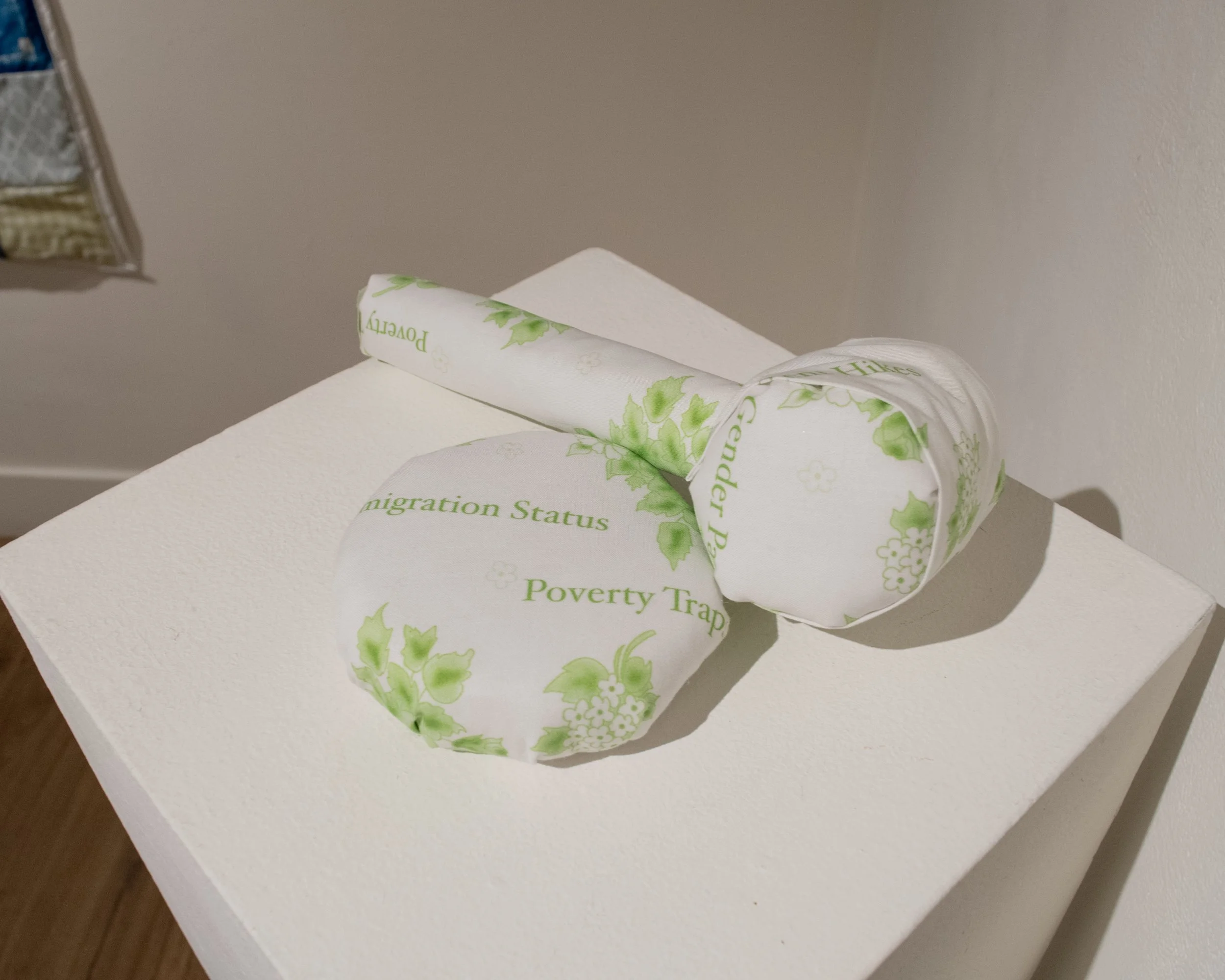 Dispossessed explores the grief of poverty and the trauma of losing possession of foundational objects that represent identity, history, and memory. Housing insecurity strips us of our ability to establish roots and denies us the safety of consistency and reliability. In place of a home structure, we revere the objects that make up a home. The things we carry from place to place affirm our existence and embody cultural heritage. When between homes, we look for a secure place to store our belongings, a third place between Point A and Point B to keep our family treasures. It is there that we experience vulnerability and the loss of property. This third place participates in the cycle of poverty that prevents us from healing and sustains perpetual states of survival.